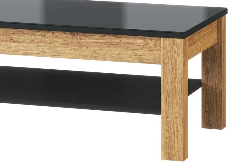 Diivanilaua pealmine plaat on kaetud musta värvi klaasiga.