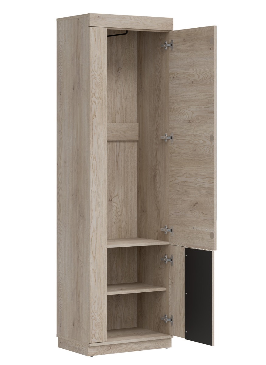 Ülemise ukse taga on riidepuutoru (riidepuud riputatakse üksteise taha), alumise ukse taga on 1 riiul.