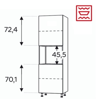 - Kõrge kapp integreeritavale kompaktahjule. Kapil on 2 ust.