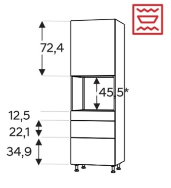 - Kõrge kapp integreeritavale kompaktahjule. Kapil on 1 uks ja 3 sahtlit.