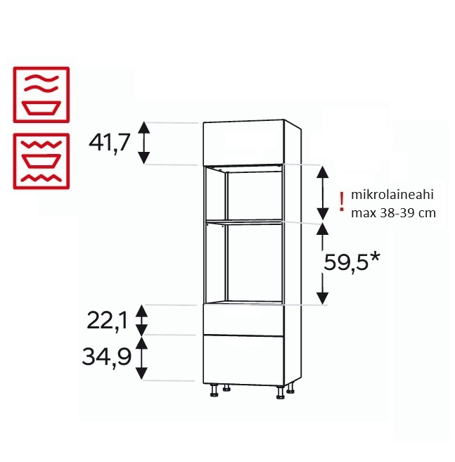 - Kõrge kapp integreeritavale ahjule ja integreeritavale mikrolaineahjule.