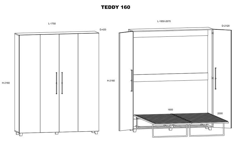 Voodile sobib madrats mõõtudes 160 x 200 cm, maksimaalse kõrgusega 15 cm. Madrats ei kuulu komplekti.