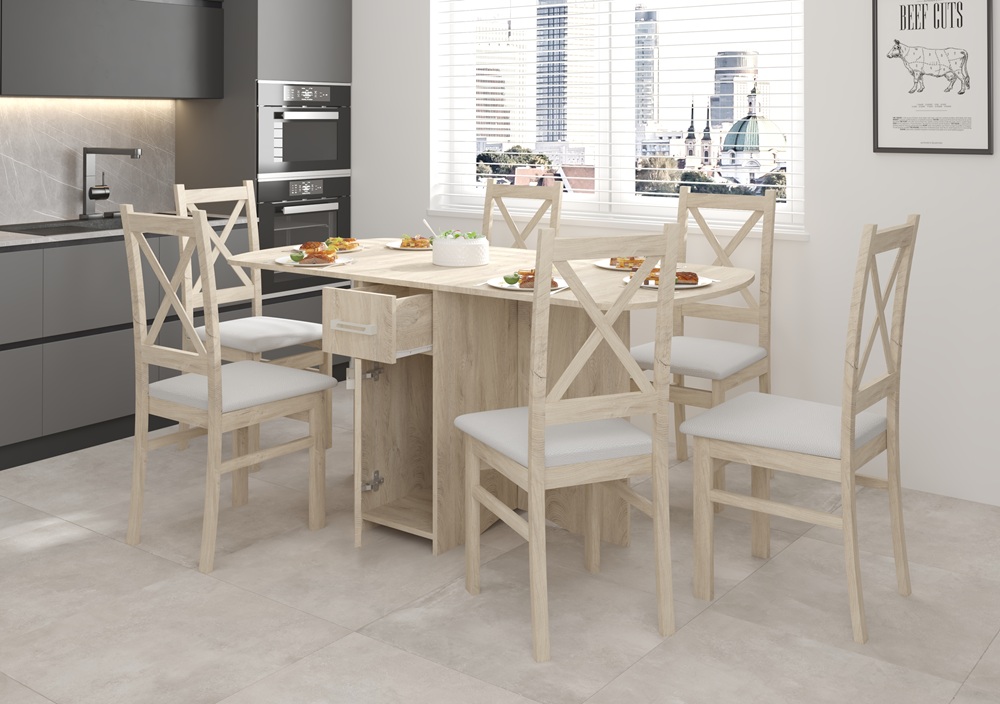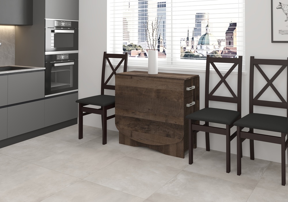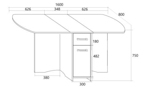 Expert 10 on kahe tiivaga pikendatav köögilaud, mis on lisaks varustatud 2- sahtli ja 2-kapiga.