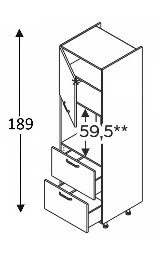 - Kõrge kapp integreeritavale ahjule. Kapil on 1 uks ja 2 sahtlit.