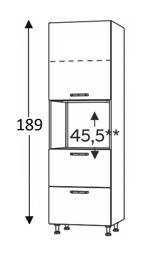 - Kõrge kapp integreeritavale kompaktahjule. Kapil on 1 uks ja 2 sahtlit.