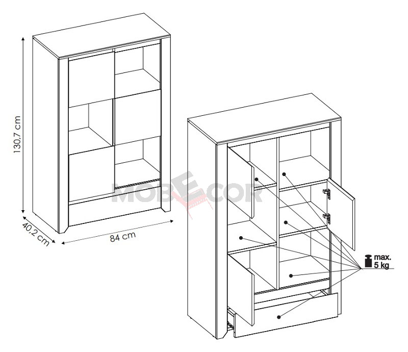 Materjal: kvaliteetne ja vastupidav melamiinkattega laminaat.
