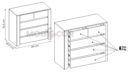 Materjal: kvaliteetne ja vastupidav melamiinkattega laminaat.