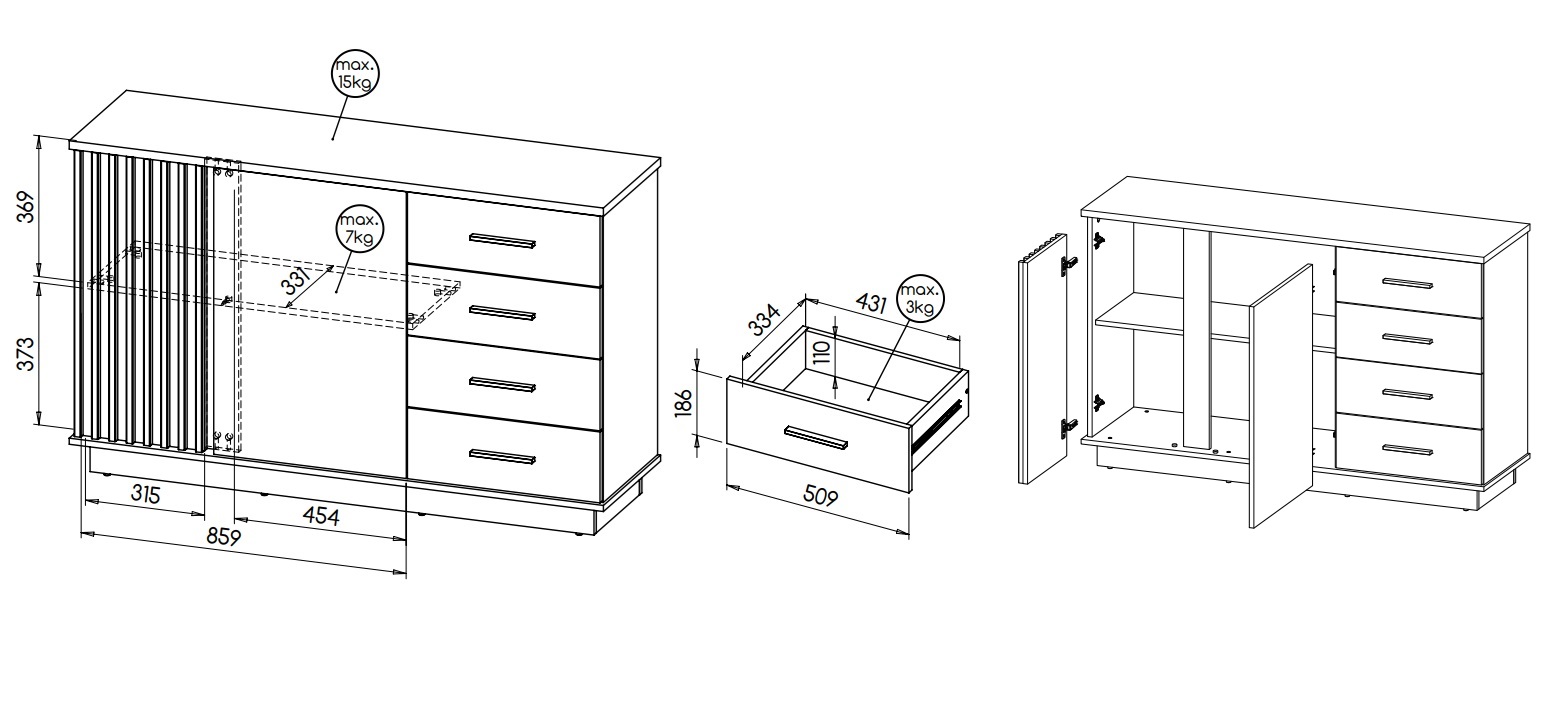 Korpus: lamineeritud puitlaastplaat.