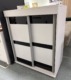 Kummutil on 2 lükandust. Uste taga on riiul.