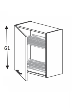 - 1-uksega seinakapp. Ukse taga on nõuderest koos alusega.