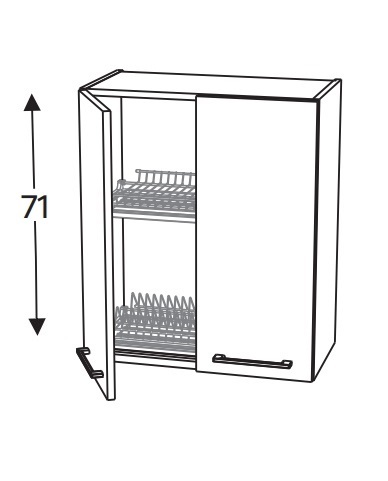 - 2-uksega seinakapp. Uste taga on nõuderest koos alusega.
