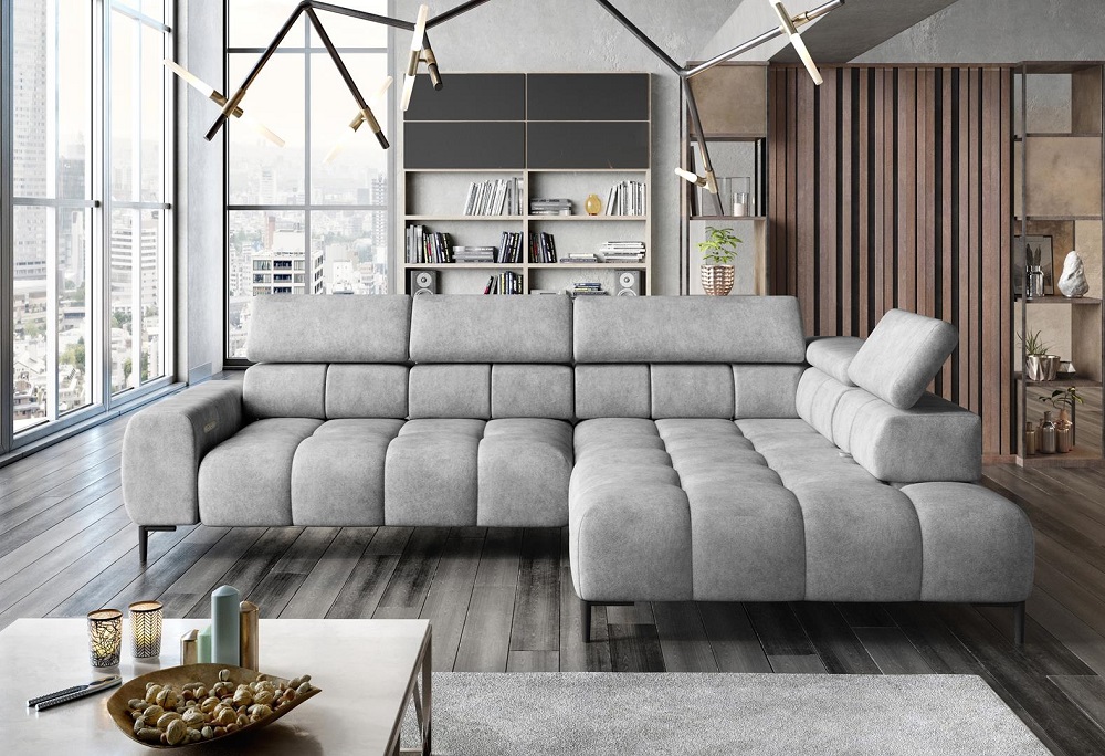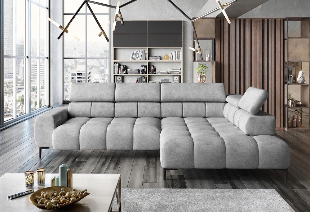 Nurgadiivanil on elektriliselt reguleeritav istme sügavus ja reguleeritavad peatoed.