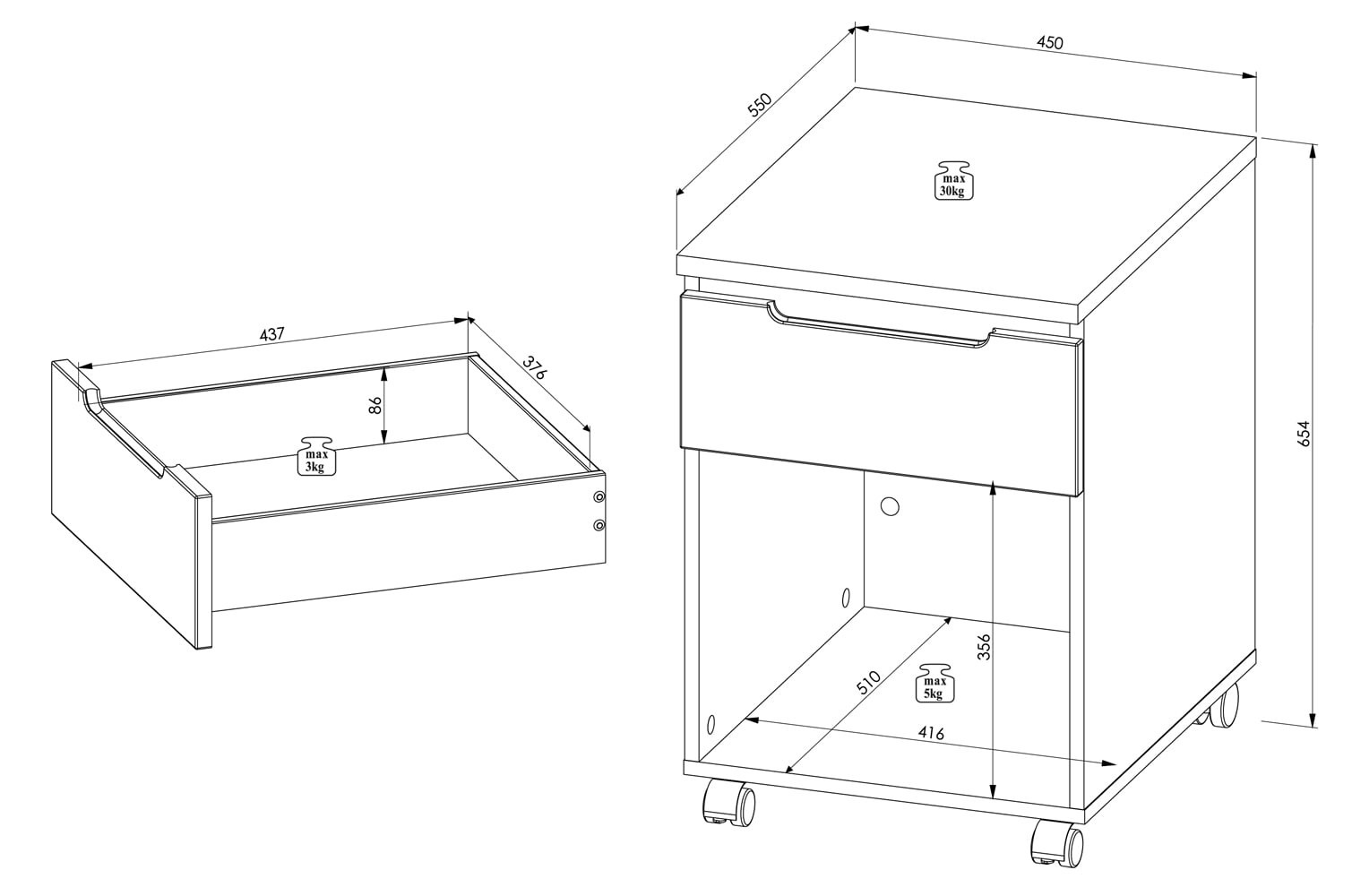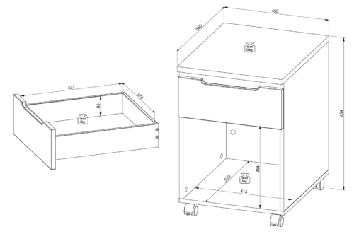 1-sahtliga ratastel sahtliboks. Sahtel on vaikselt sulguv.