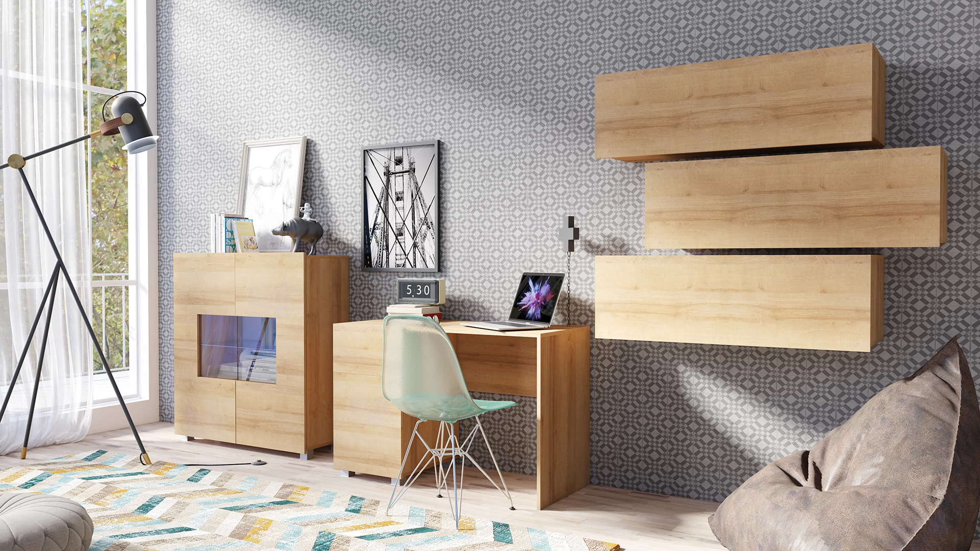 Värvivalik: must/must kõrgläikega; valge/valge kõrgläikega; kuldne tamm.