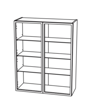 2-uksega seinakapp. Kapi uks on alumiiniumraamiga (21 mm) ja karastatud klaasiga.