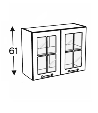 2-uksega seinakapp. Kapi uksed on osaliselt klaasiga.