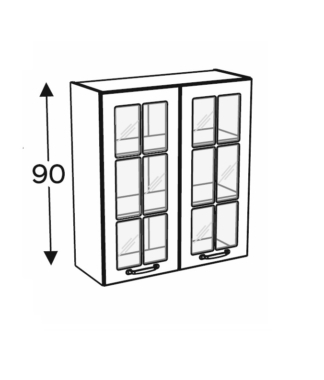 2-uksega seinakapp. Kapi uksed on osaliselt klaasiga.