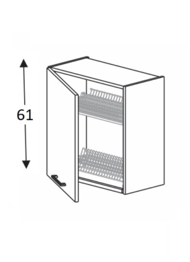 - 1-uksega seinakapp. Ukse taga on nõuderest koos alusega.