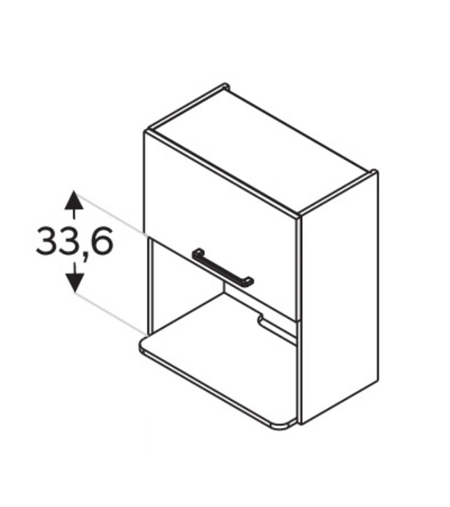 - Kapil on 1 uks, mis avaneb üles ja koht mikrolaineahjule kõrgusega 33,6 cm.