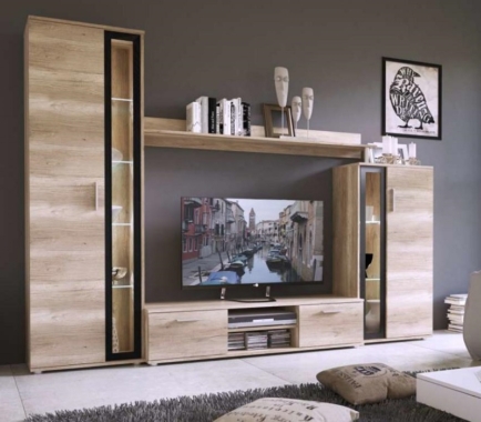 Komplekti kuulub: madal vitriinkapp; seinariiul; tv-alus ja kõrge vitriinkapp.
