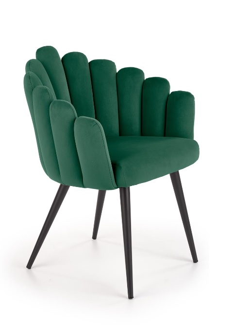 Tooli karkass on kaetud rohelist värvi sametist kangaga, pehmenduseks kasutatud porolooni.
