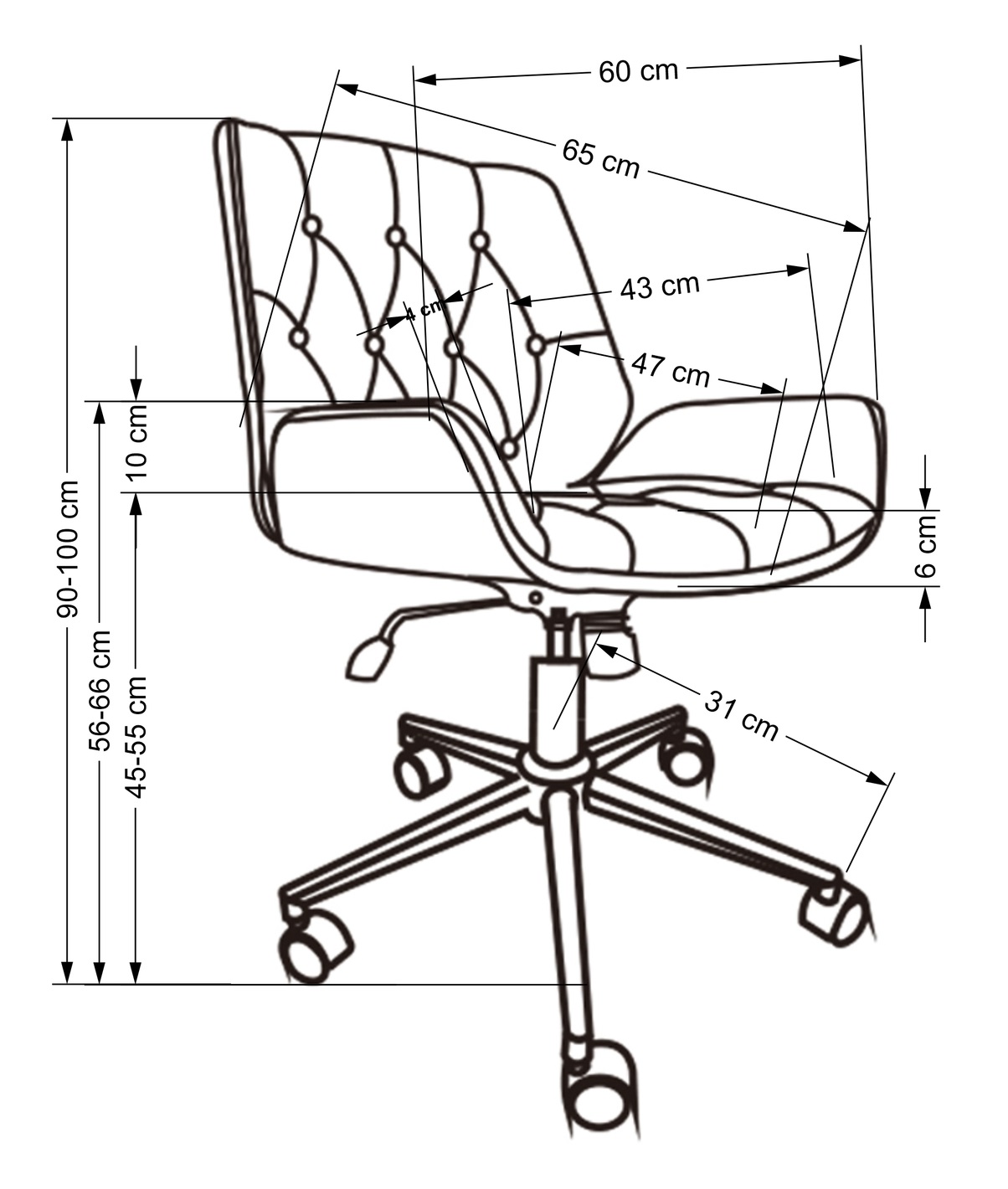 Tooli sügavus: 65 cm.