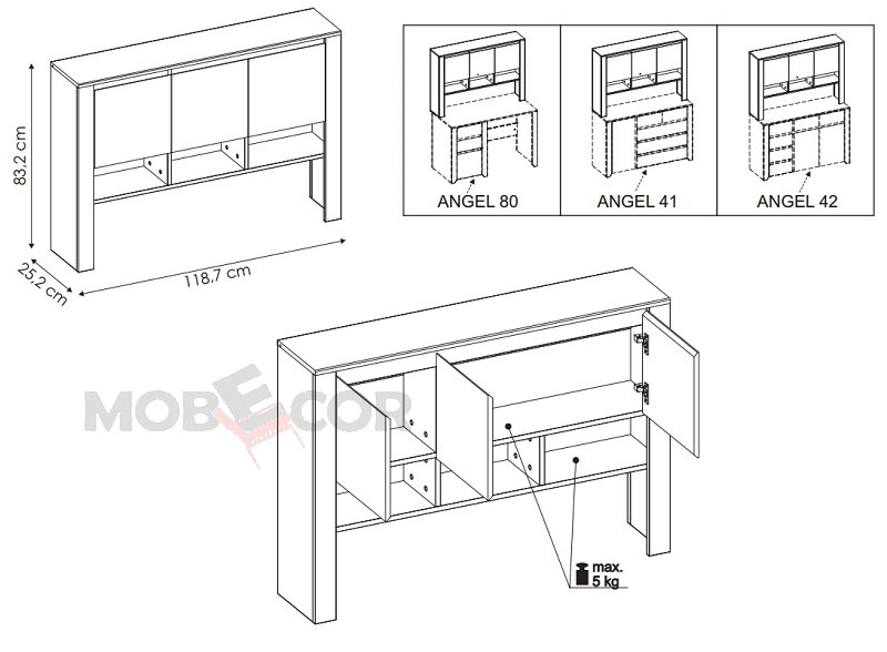 3-uksega ülakapp sobib kokku kummutitega TYP 41 ja TYP 42 ning kirjutuslauaga TYP 80.
