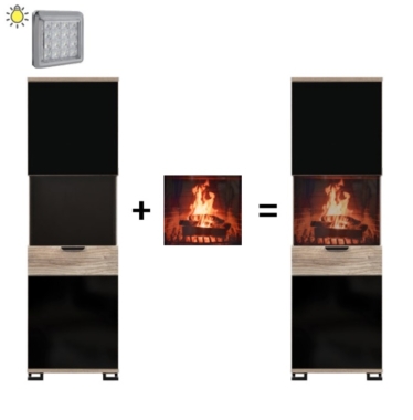 Paneel leegiga on valmistatud pleksiklaasist, millele on trükitud leek kaminas. Paneel on taustvalgustusega (led riba).