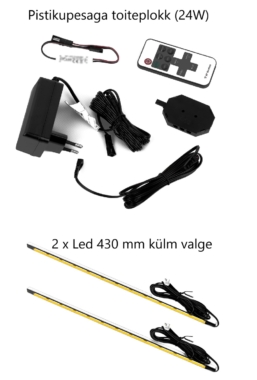 Lisavalikuna võimalik juurde osta led valgustus (2 x led 430 mm, külm valge + toiteplokk 24W/kaugjuhtimispult/6-punktiline jaotur/kaablid).