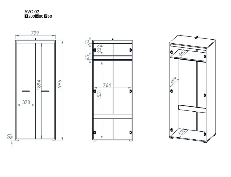 Riidekapp Avo 02 (80/50/200)
