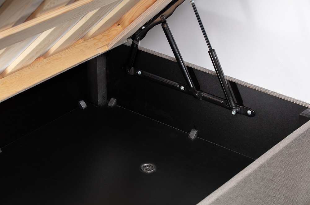 Voodi on kergelt ja vaikselt sulguvate gaasihingedega.