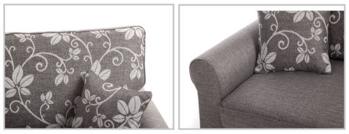 Diivani istumise osa ja käetugede sisemise külje katteks on kangas.