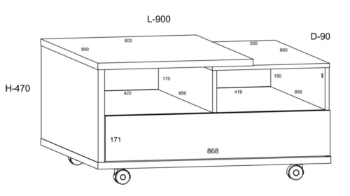 Ratastel, 2 sahtliga diivanilaud.