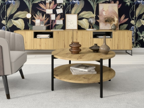 Ümmargune diivanilaud kahe plaadiga.