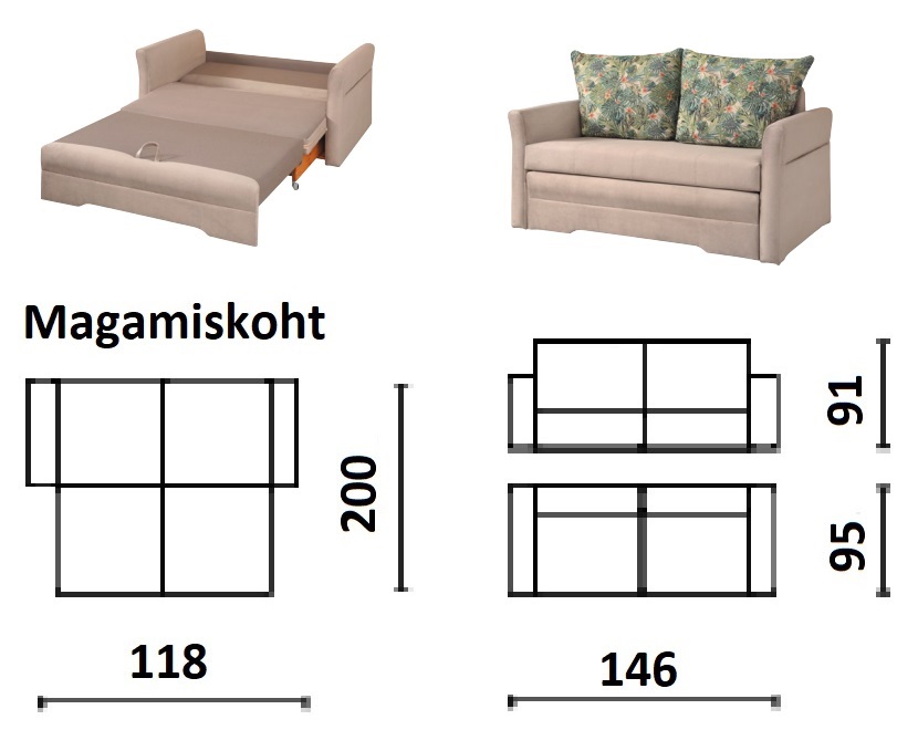 Magamisosa avaneb ette ja magamisosa all on väike pesukast.