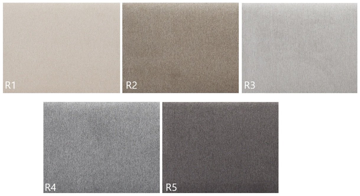 Värvivalik: R1 (beež); R2 (latte); R3 (helehall); R4 (hall); R5 (grafiit).