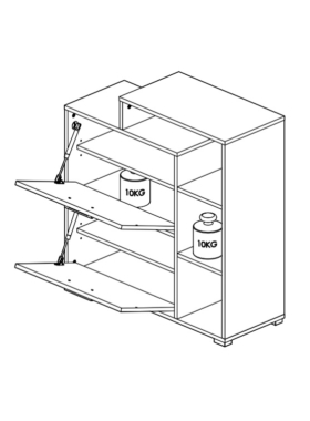Kapil on avatud riiul ja 2 ust, mis avanevad ette.