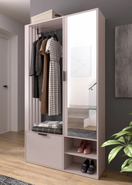 Esikukomplektil on 1 uks, mille taga on riiulid, klapiga uks (avaneb ette) jalanõude jaoks ja riidepuutoru.