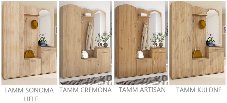 Värvivalik: tamm Sonoma hele; tamm Cremona; tamm Artisan; tamm kuldne.