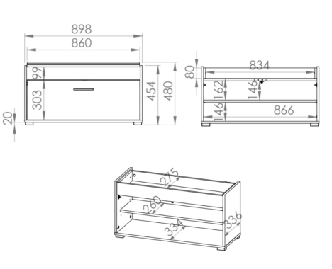 1-ukse- ja panipaigaga jalanõudekapp. Uks avaneb ette.