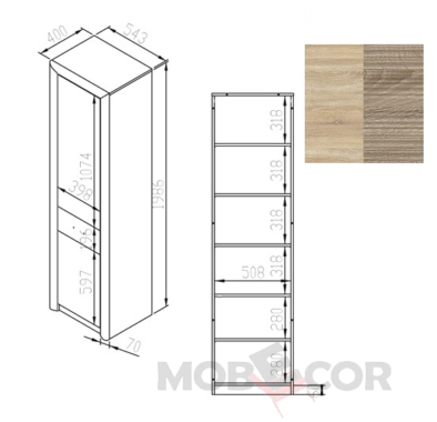 Riiulitega kapil on 1 uks, mis avaneb vasakule.