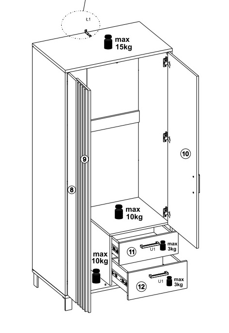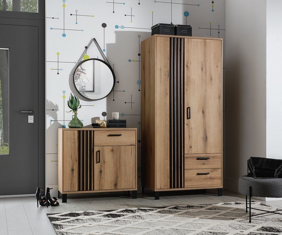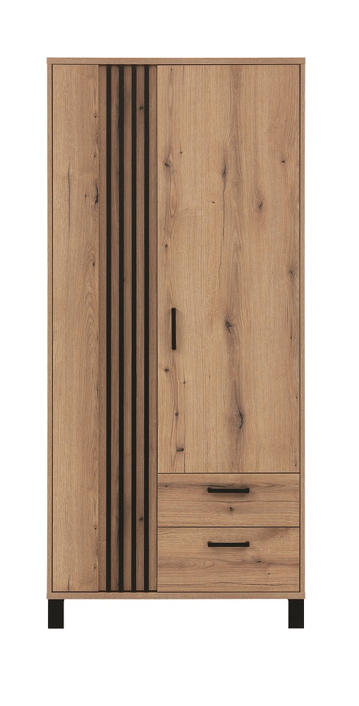 Riidekapil on 2 ust ja 2 sahtlit. Uste taga on riidepuutoru.