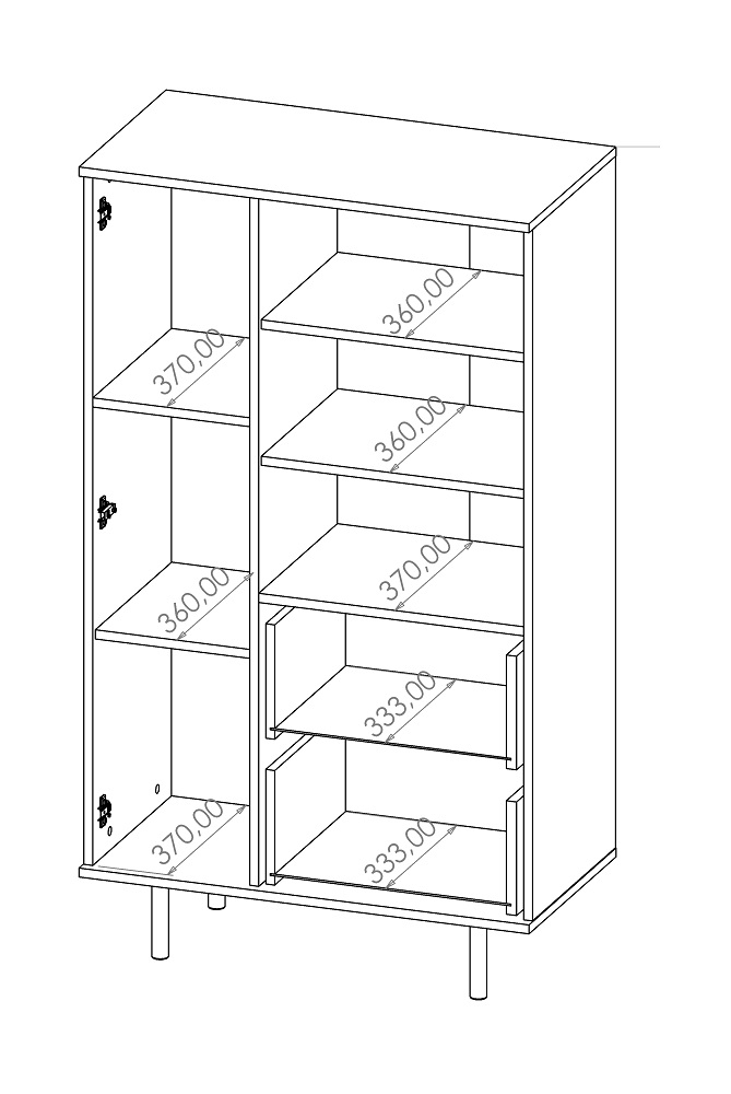 Materjal: lamineeritud mööbliplaat, 16 mm.