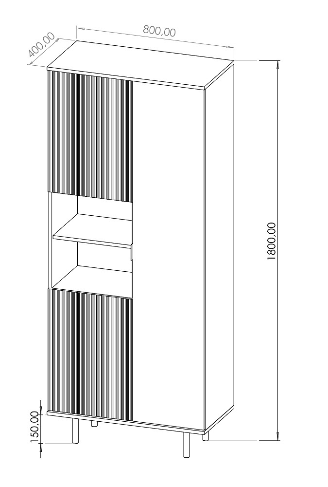 Laineline esipind: freesitud MDF plaat, kaetud fooliumiga – ilma käepidemeta/avaneb peale vajutades.
