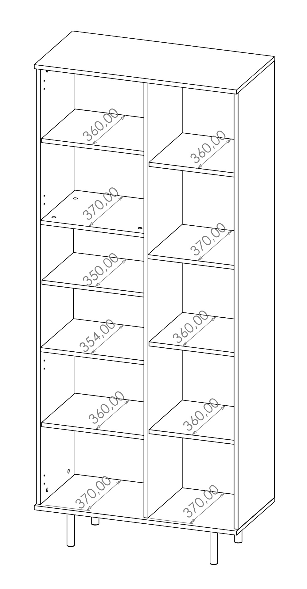 Materjal: lamineeritud mööbliplaat, 16 mm.