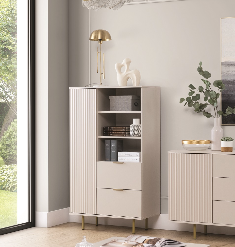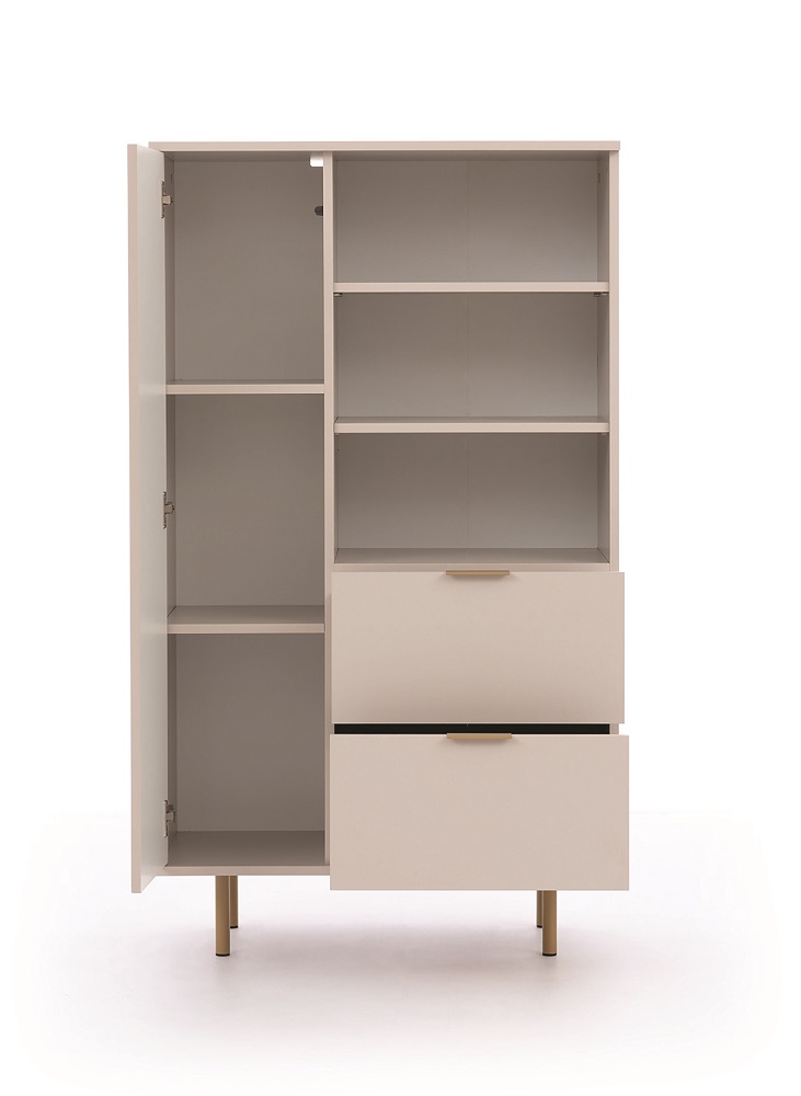 Laineline esipind: freesitud MDF plaat, kaetud fooliumiga – ilma käepidemeta/avaneb peale vajutades.