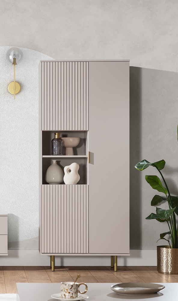 Laineline esipind: freesitud MDF plaat, kaetud fooliumiga – ilma käepidemeta/avaneb peale vajutades.