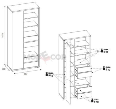 Riidekapp Shetland 2D2S TYP 20 (86/58/197)