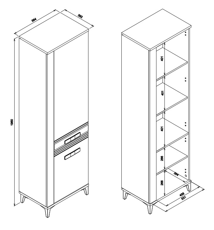 Siseriiulid: lamineeritud puitlaastplaat, 16 mm.