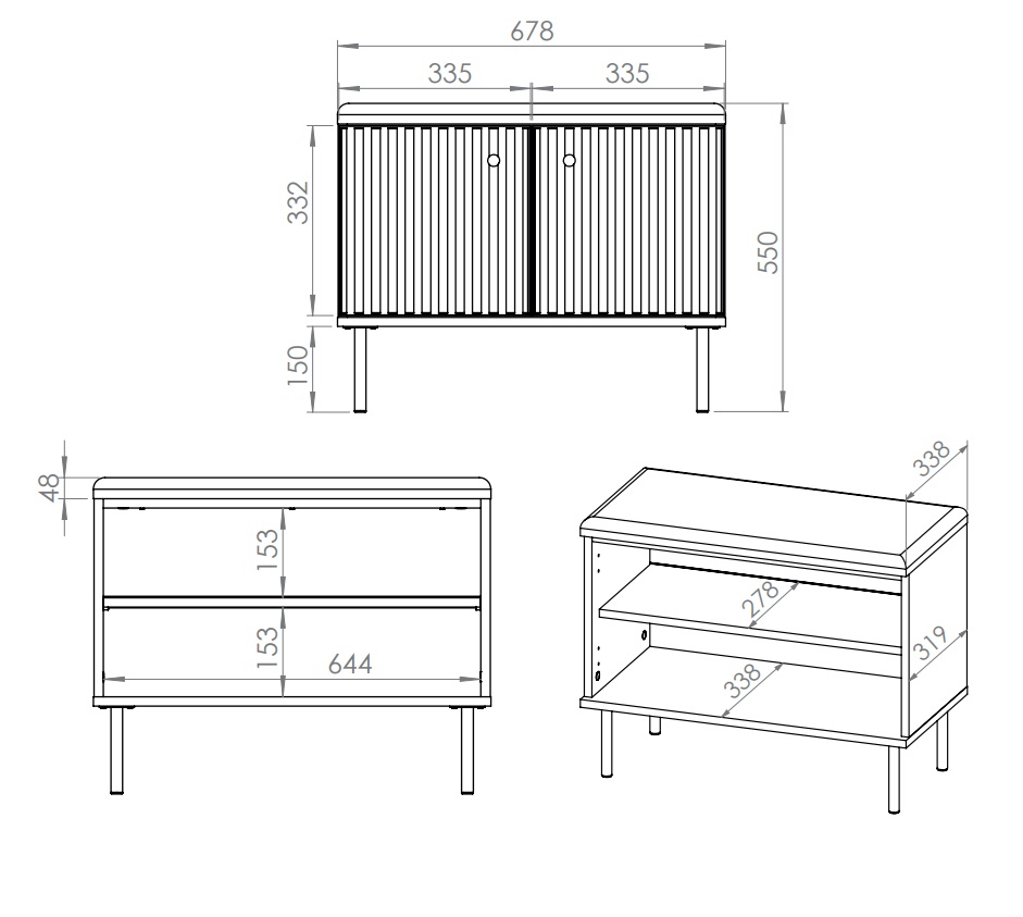 Esipinnad: lamineeritud puitlaastplaat + MDF.